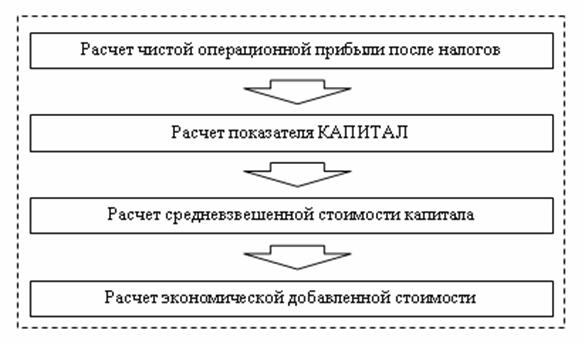 Таким образом расчет показателя Экономической добавленной стоимости можно осуществить в четыре этапа.